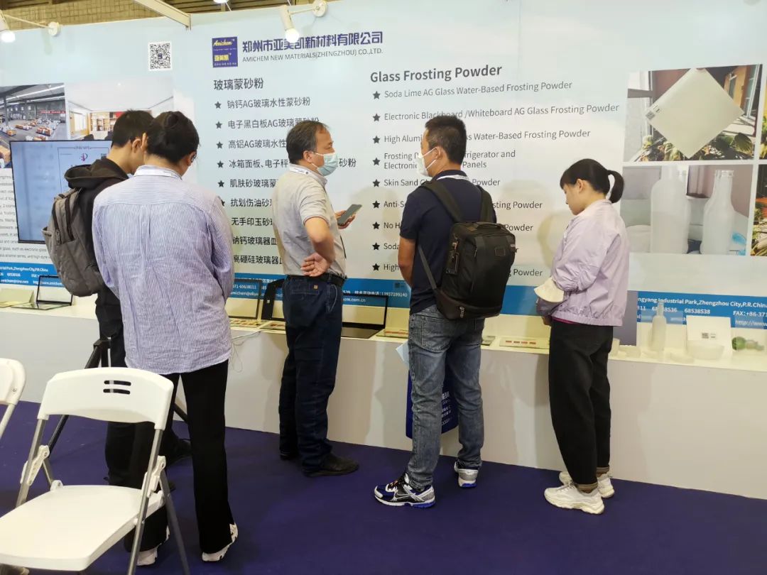 AmichemNew Materials (Zhengzhou) Co., Ltd., as an exhibitor, has participated in this grand international event of the glass market industry with series of products such as glass frosting powder, glass enamel, glass/metal ink and glass/metal paint, together with numerous peers and customers to discuss the innovative technologies and cutting-edge development trends in the glass industry.